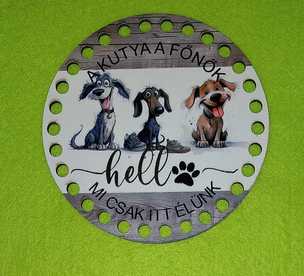 12cm kör Horgolható nyomtatott fa alap A kutya a főnők Mi csak itt lakunk. 7mm lyukkal 1db 12 cm vastagság 2,5mm