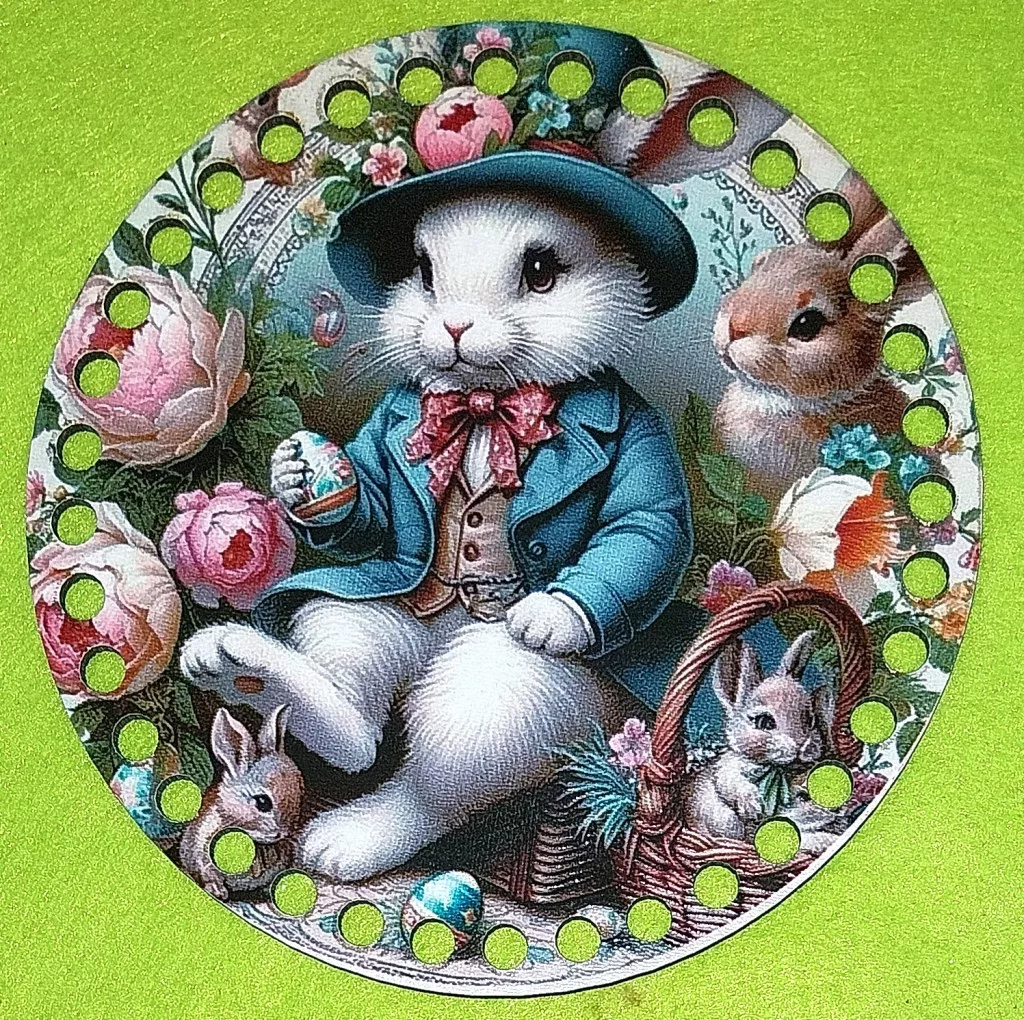 15cm Horgolható nyomtatott fa alap 7 mm lyukkal Fehér nyuszi kalapban 1db/csomag 15cm vastagság 3mm