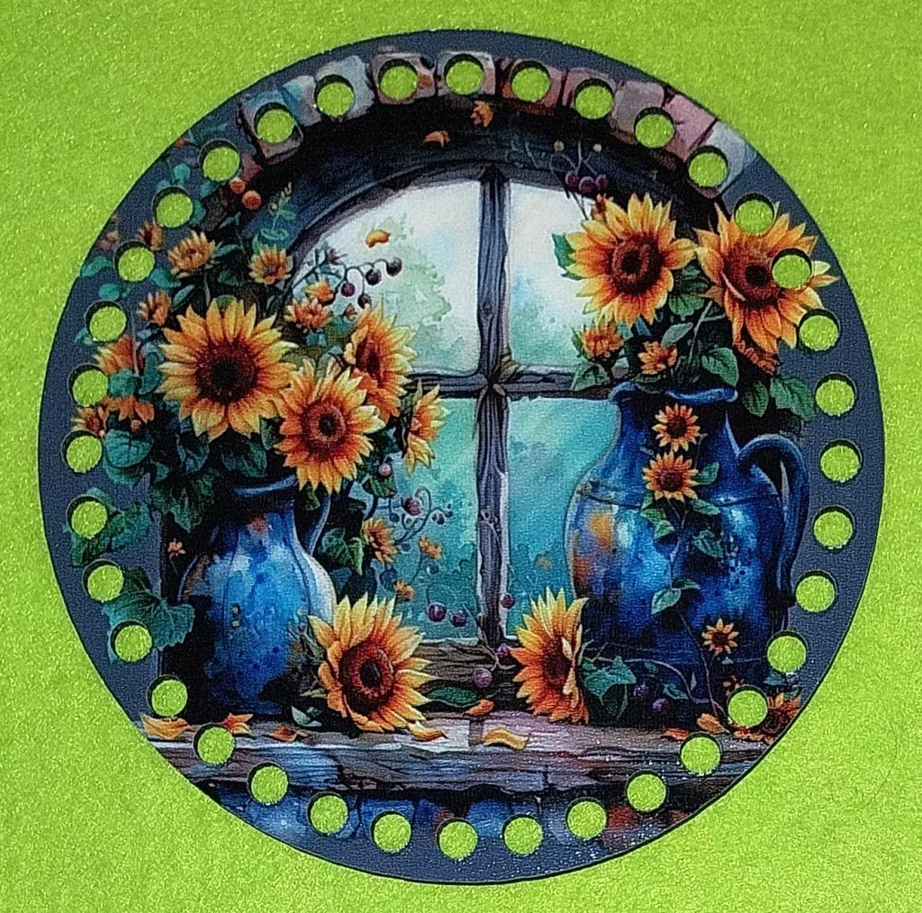 15cm Horgolható nyomtatott fa alap 7 mm lyukkal Napraforgó ablakban kék vázában 1db/csomag 15cm vastagság 2,5mm