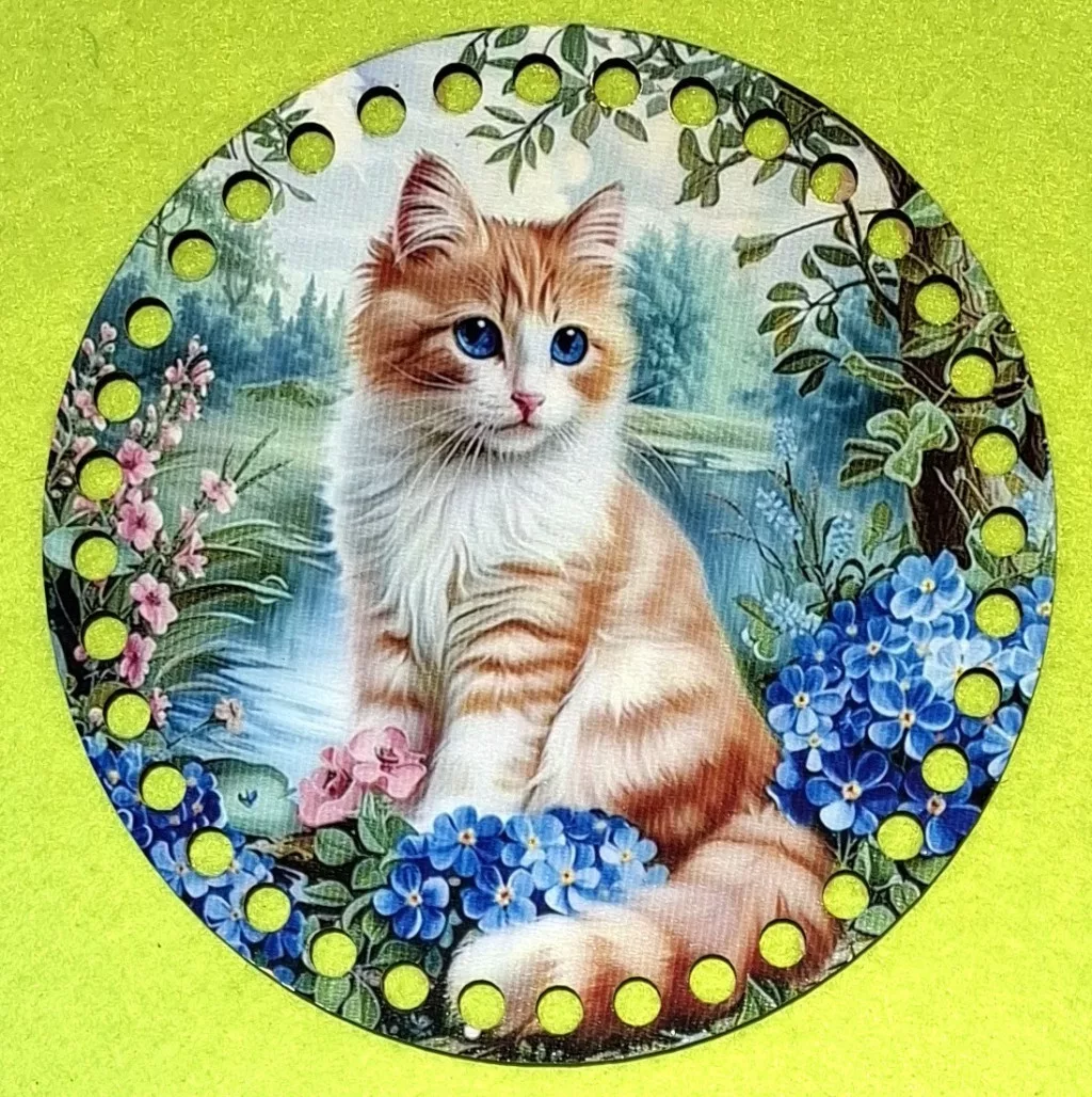 15cm Horgolható nyomtatott fa alap 7 mm lyukkal Vörös kis cica 1db 15cm vastagság 2,5mm