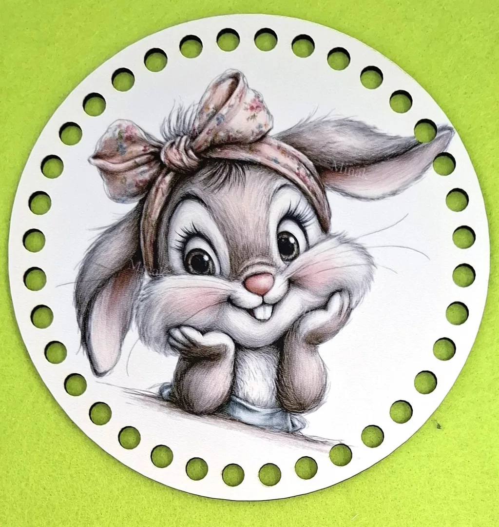 15cm Horgolható nyomtatott fa alap 7mm lyukkal Aranyos nyuszi lány 1db/csomag 15cm vastagság 3mm