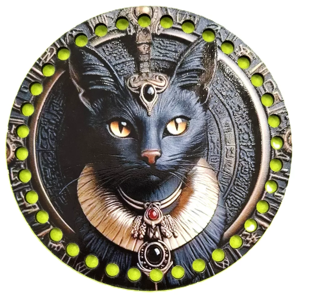 15cm Horgolható nyomtatott fa alap Egyiptomi Fáraó macska 7mm lyukkal 1db 15cm vastagság 2,5mm