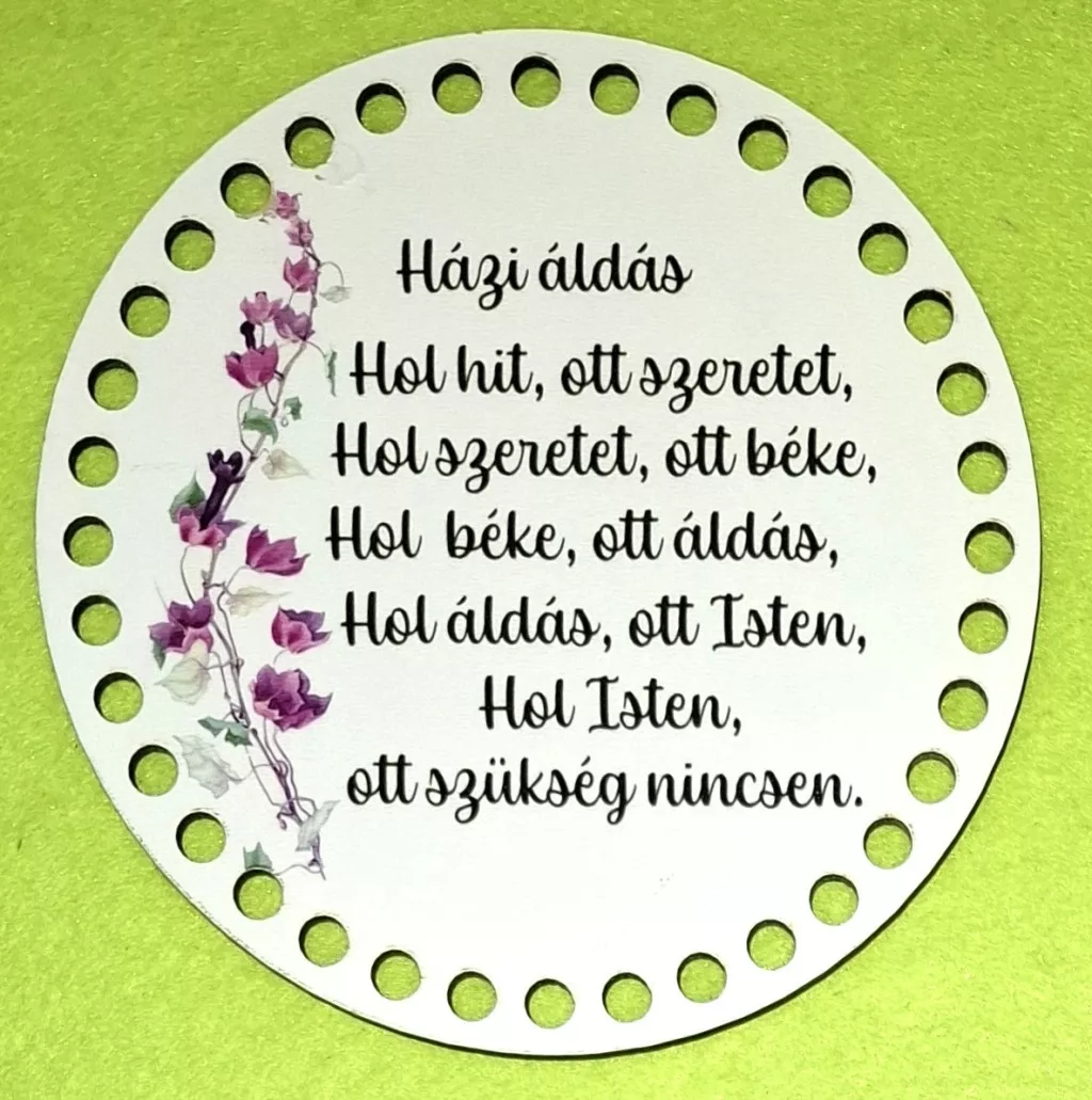 15cm Horgolható nyomtatott fa alap Házi áldás 7mm lyukkal 1db 15cm vastagság 2,5mm