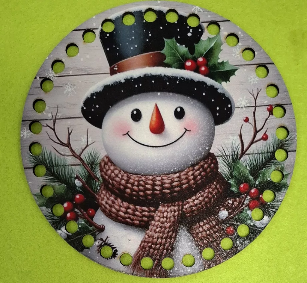 15cm Horgolható nyomtatott fa alap Hóember deszkás háttér 7mm lyukkal 1db 15cm vastagság 2,5mm