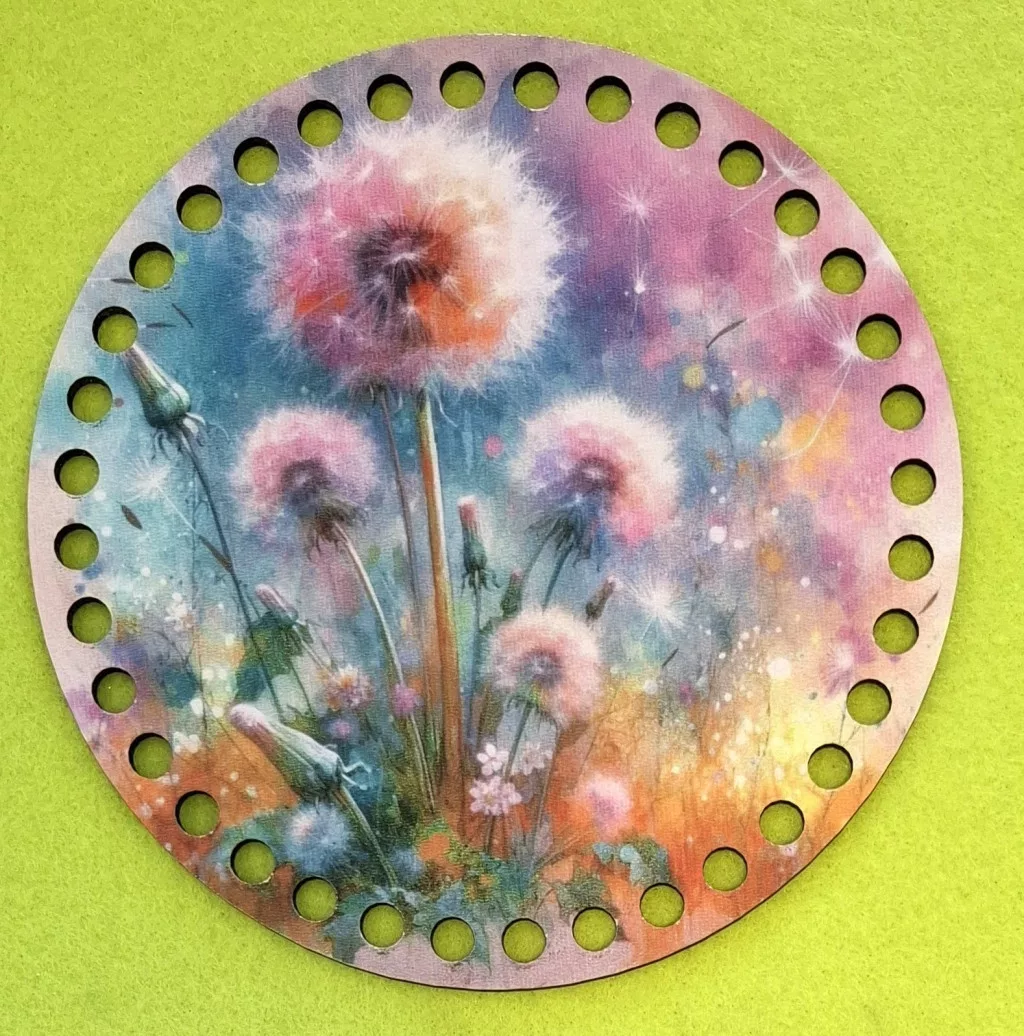 15cm Horgolható nyomtatott fa alap Pitypangos 7mm lyukkal 1db 15cm vastagság 2,5mm