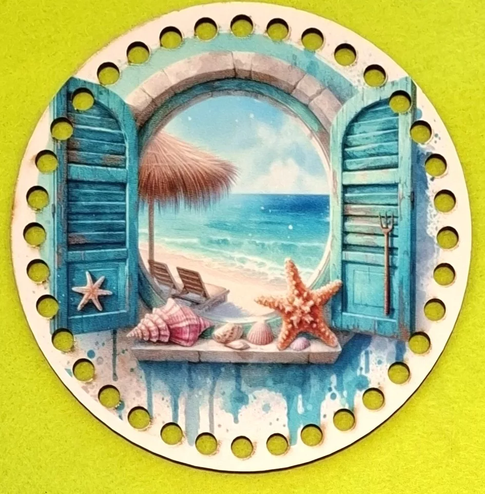 15cm Horgolható nyomtatott fa alap Tengere néző ablak 7mm lyukkal 1db 15cm vastagság 2,5mm