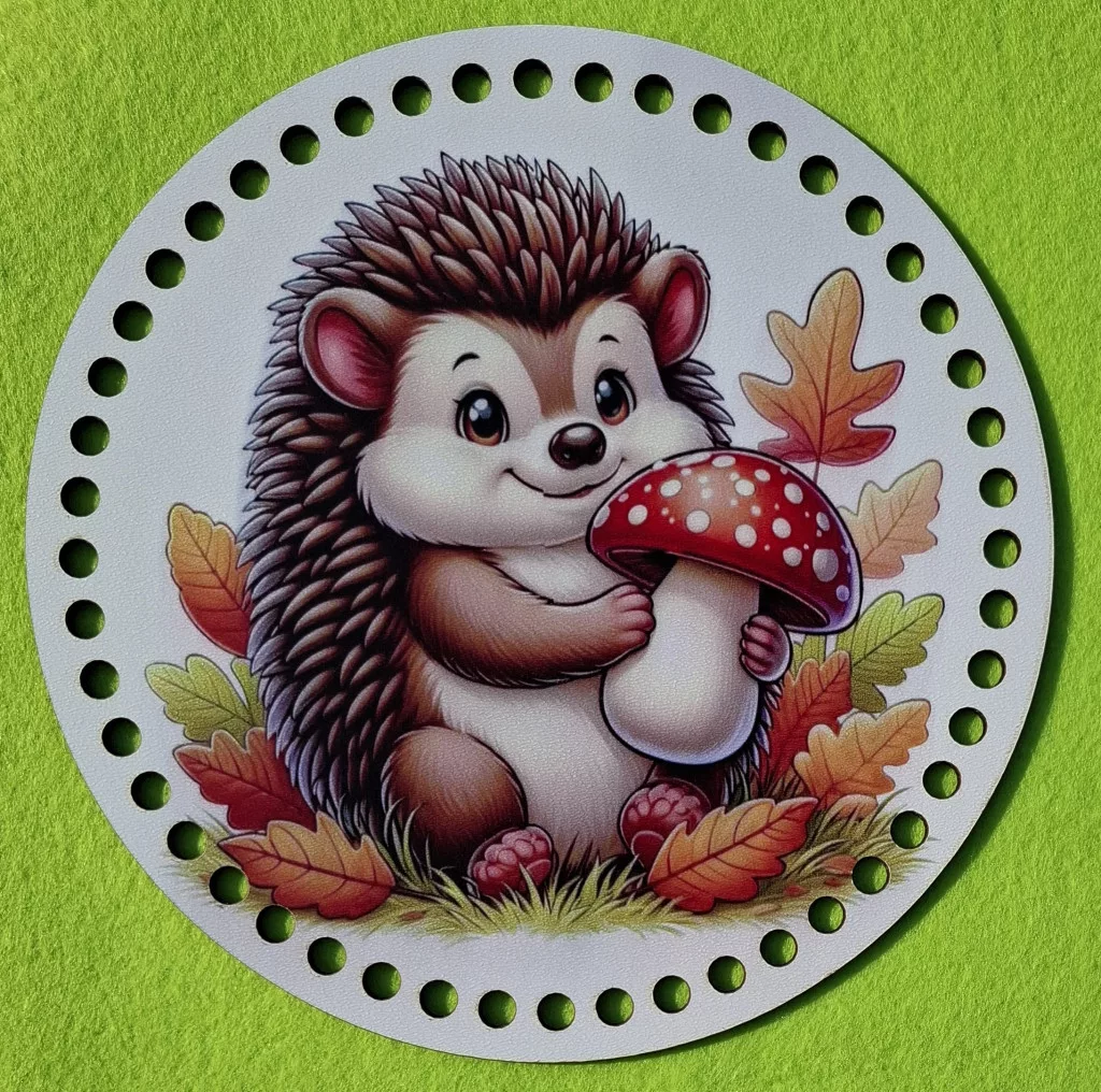 19,5cm Horgolható nyomtatott fa alap Süni gombával 1db 19,5cm vastagság 2,5mm