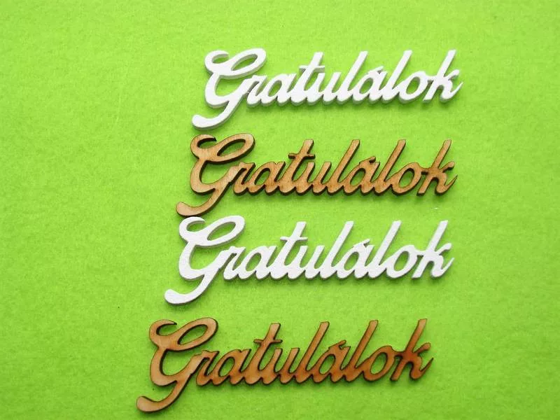 Fehér és natúr fa Gratulálok 4db/csomag 9,5x3cm