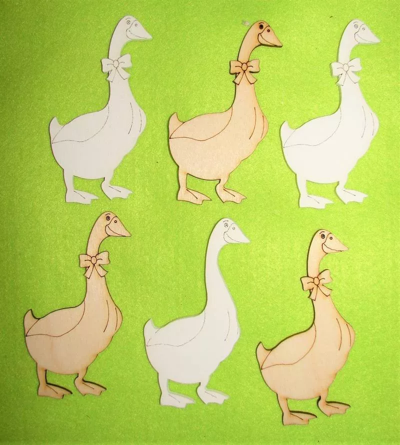 Fehér és natúr fa libák 6 db/csomag 10x6cm