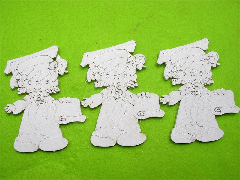 Fehér fa Ballagó kislány 3db/csomag 8x10,5cm
