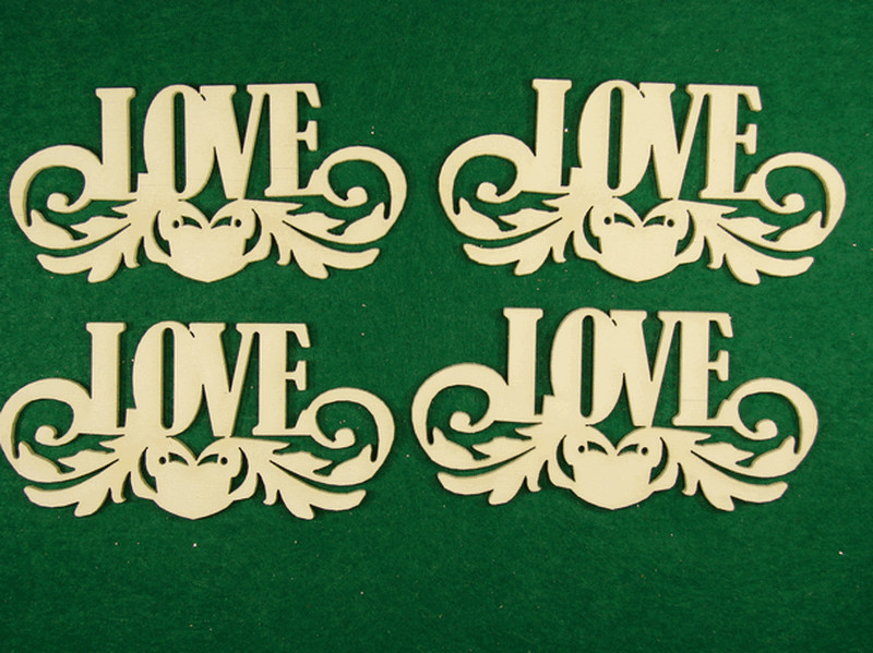 Fehér fa LOVE díszítve 4db/csomag 10x5cm