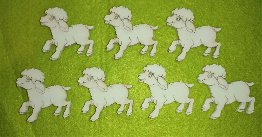 Fehér fa bárány 7db/csomag 5x5cm