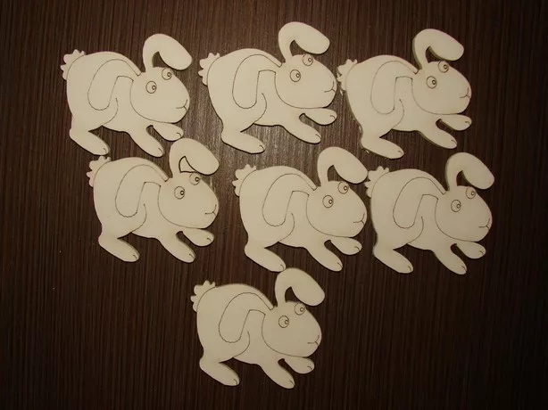 Fehér fa ijedt nyuszi 6,5x6cm 7db/csomag