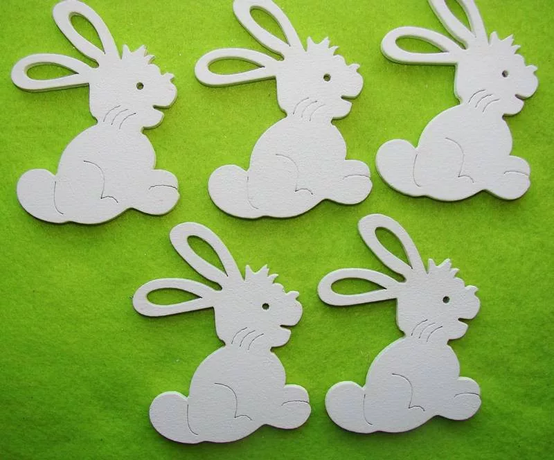 Fehér fa ülő nyuszi 5db/csomag 6x8cm