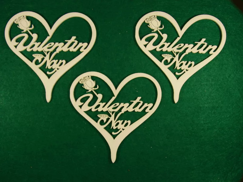 Fehér fa Valentin nap szívben 3db/csomag 10x10cm