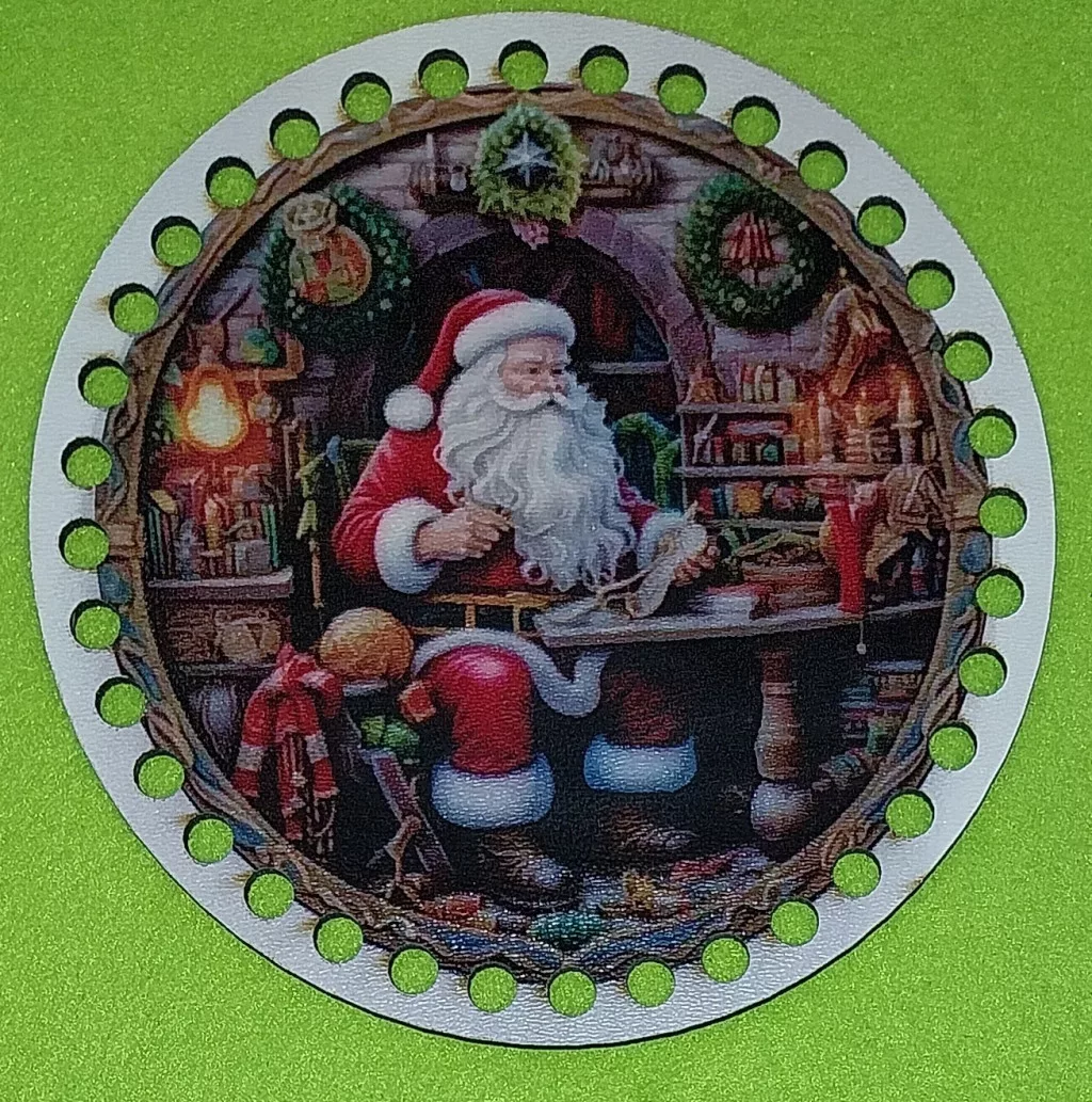 15 cm Horgolható nyomtatott Fa koszorú közép 7mm lyukkal Télapó kívánság listával 1db 15 cm vastagság 2,5mm