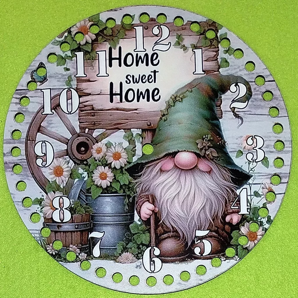 20 cm Horgolható óralap Zöld sapkás manó Home sweet home felirattal 7mm lyukkal 1db vastagság 2,5mm