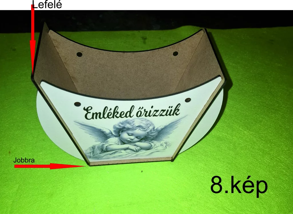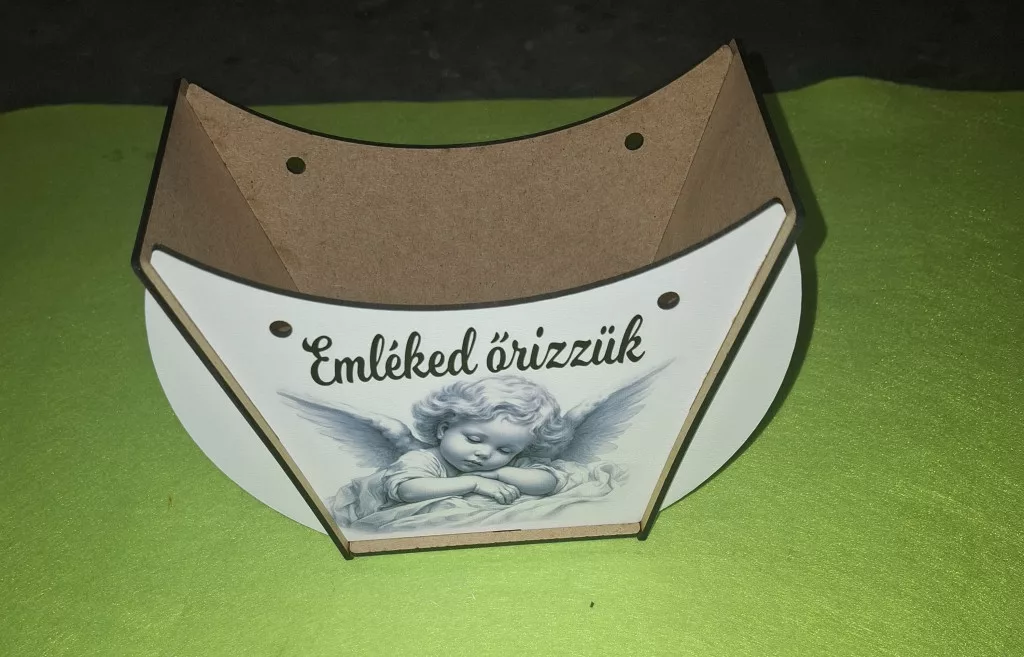 Lapraszerelt ridikül, Fehér alap Angyal Emléked őrizzük felirattal 1szett széleség 19 cm magasság 14cm mélység 7,5cm anyag vastagság 2,5mm