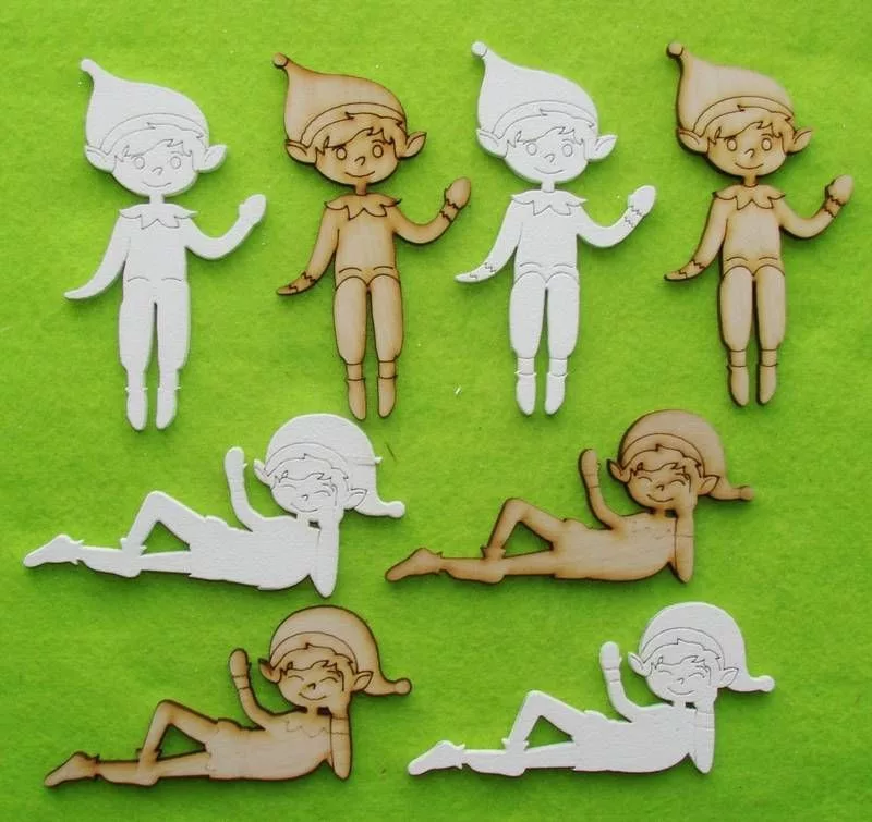 Natúr és fehér Fa Téli manó szett 2 szett 8db/csomag 10cm