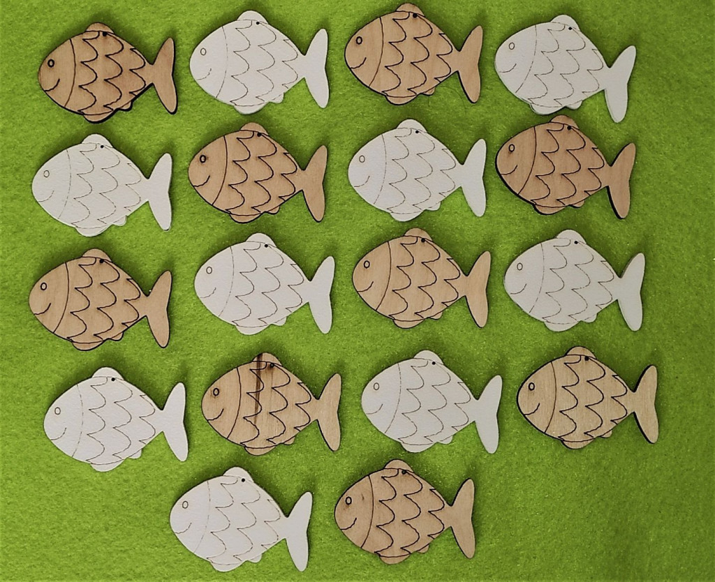 Natúr és fehér fa hal pikkelyes18db/csomag 5x5cm