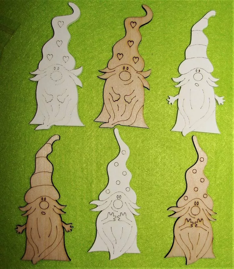 Natúr és fehér fa sapkás manók 6 db/csomag 10x4,5