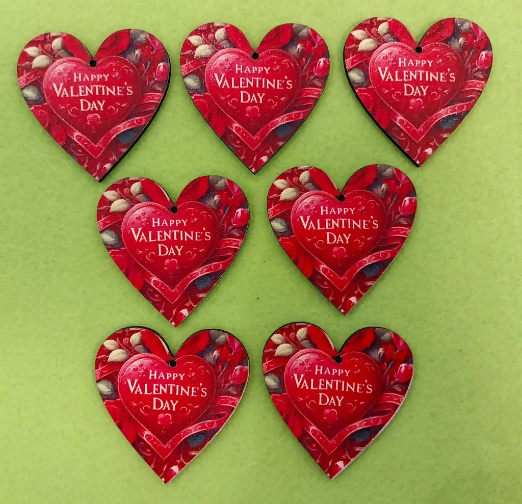 Nyomtatott Fa 5cm Valentin szív 7db/csomag