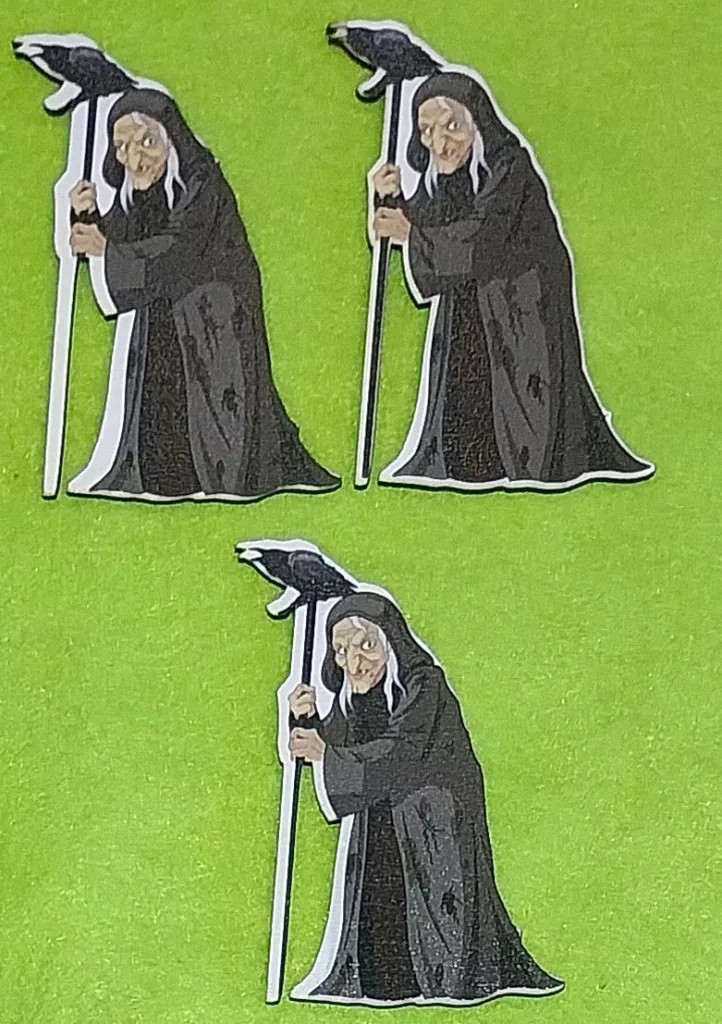 Nyomtatott Fa Álló boszorkány varjúval 3db/csomag 6,5x9cm