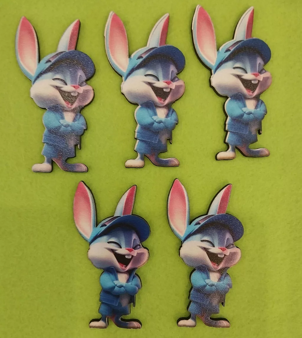 Nyomtatott Fa Kék sapkás nyuszkó 5db/csomag 4,5x7cm