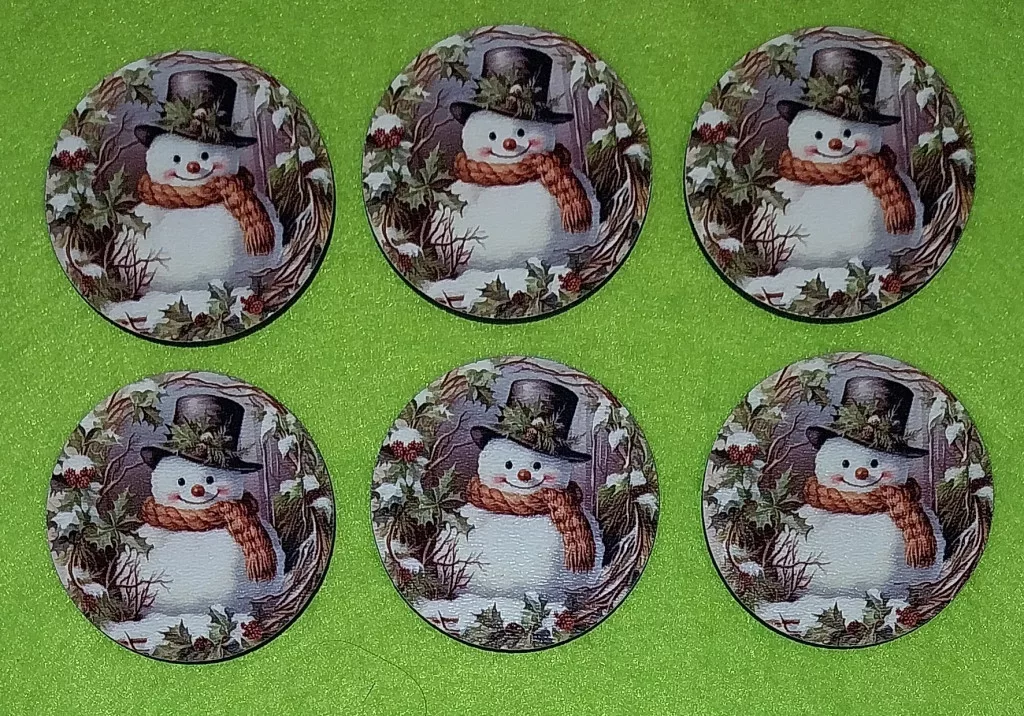 Nyomtatott Fa Kicsi kerek Hóember sállal 6db/csomag 5cm