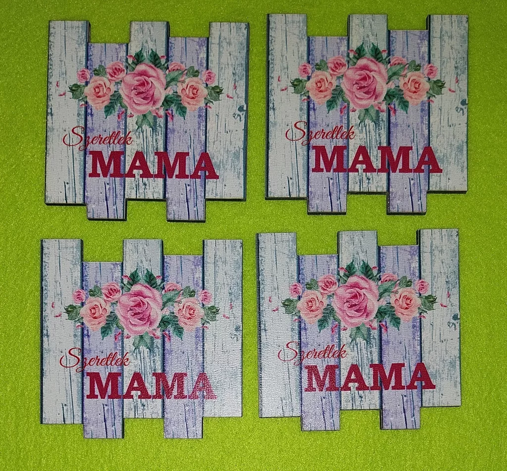 Nyomtatott Fa Négyzet formára vágva deszkás háttérrel l Szeretlek MAMA felirattal 4db/csomag 7x7cm