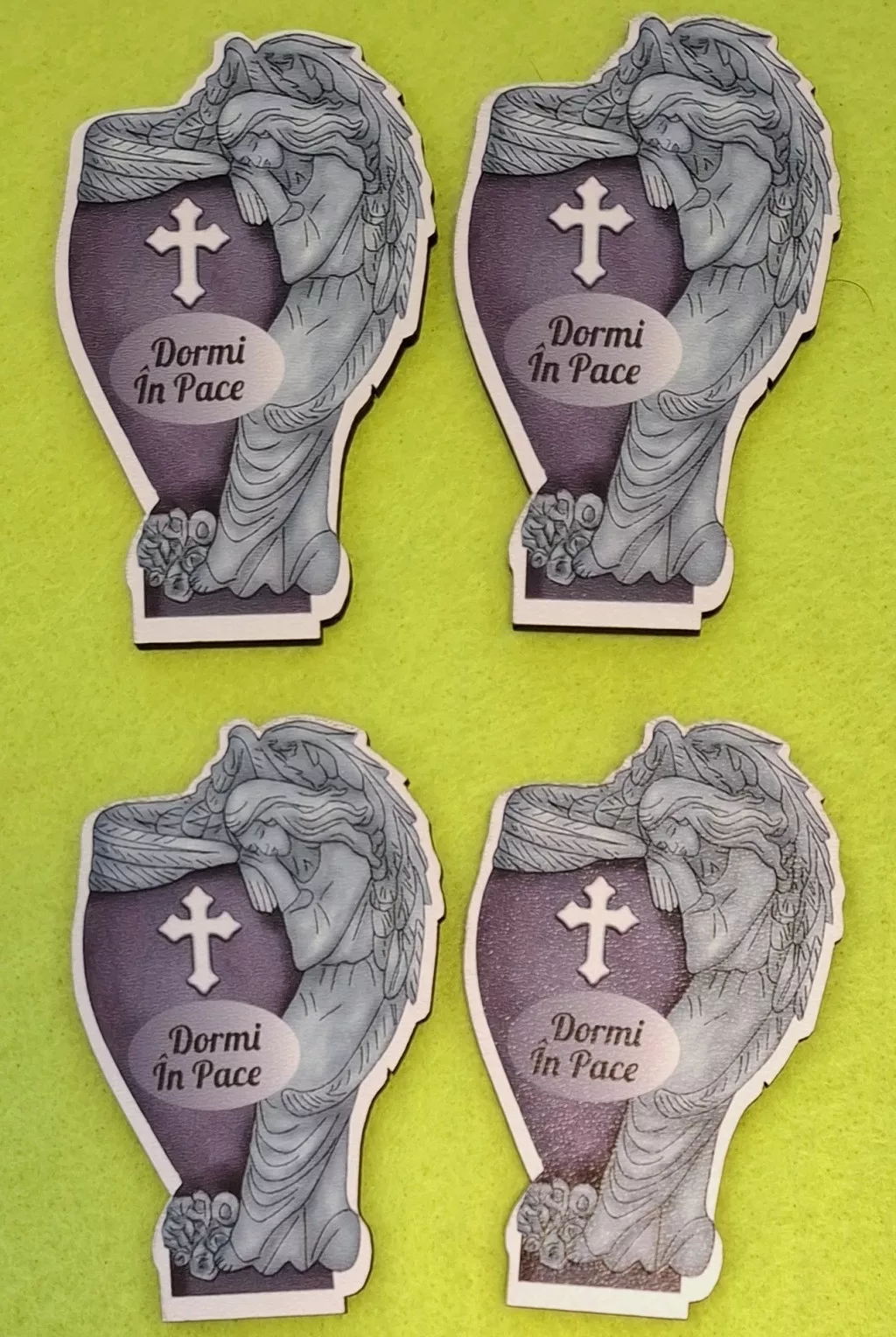 Nyomtatott Fa Nyomtatott fa Angyal Dormi În Pace felirattal 4db/csomag 5x7,5cm vastagság 3mm