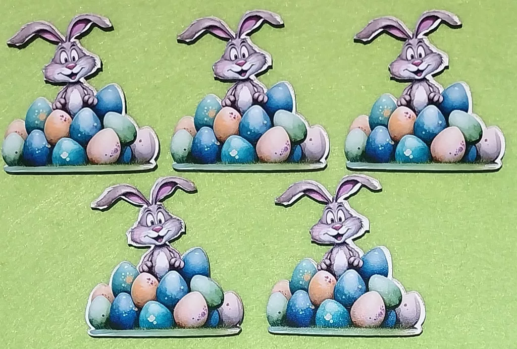 Nyomtatott Fa Nyuszi tojás kupac mögül 5db/csomag 6x6 cm vastagság 3mm