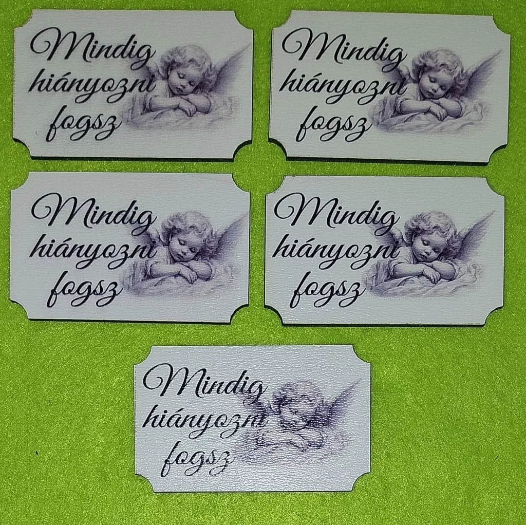 Nyomtatott Fa Tábla Szürke háttérrel angyalkás Mindig hiányozni fogsz felirattal 5db/csomag 6,5x4cm