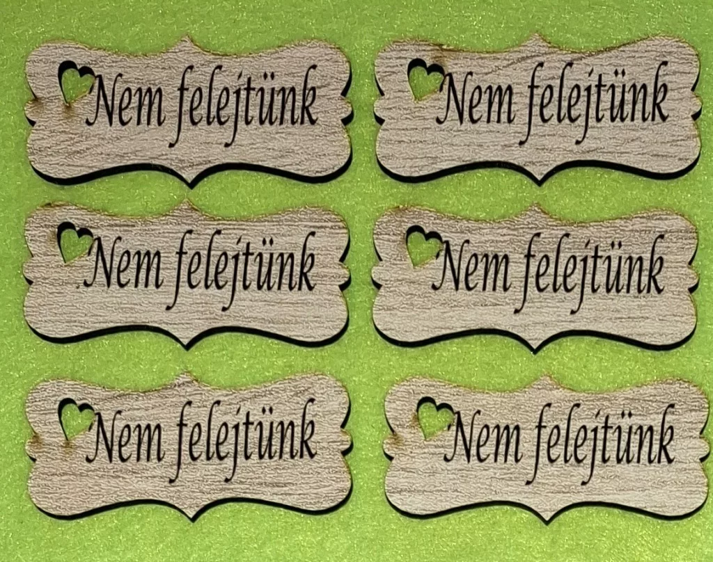 Nyomtatott Fa biléta tábla Nem felejtünk felirattal 6db/csomag 7x3,2cm vastagság 3mm
