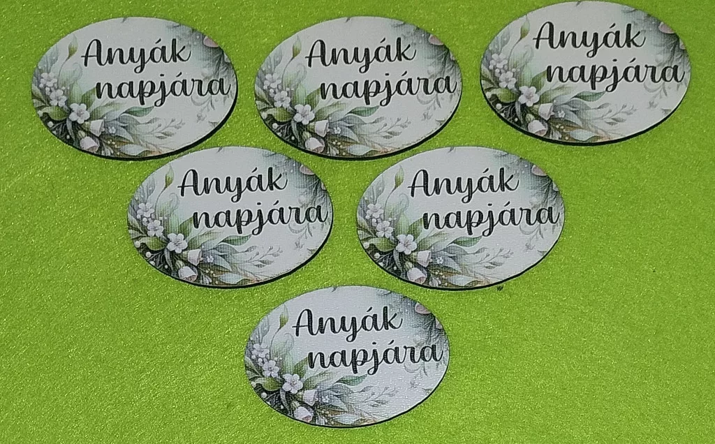 Nyomtatott Fa ovális tábla zöld virágos hátér Anyák napjára felirattal 6db/csomag 6x4cm vastagság 3mm