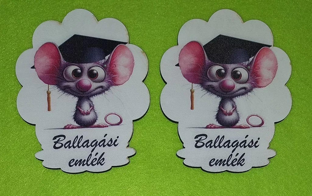 Nyomtatott fa Egér Ballagási emlék felirattal 2db/csomag 8x10cm