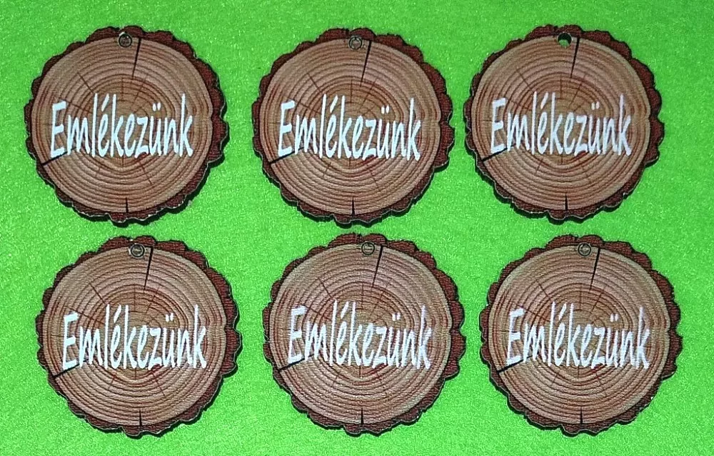 Nyomtatott fa Farönk Emlékezünk felirattal 6db/csomag 5x4,5cm vastagság 3mm