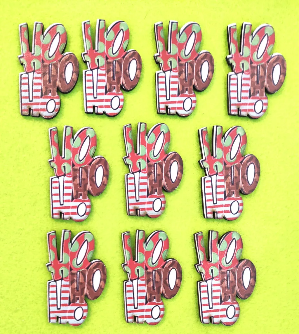 Nyomtatott fa HO-HO-HO 10db/csomag 3,5x5,5cm