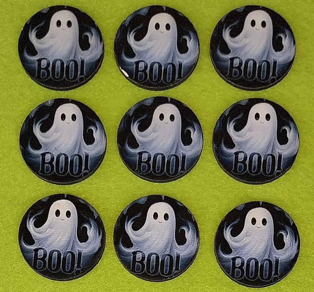 Nyomtatott fa Kerek tábla szellemmel boo felirattal 9db/csomag 3,8cm