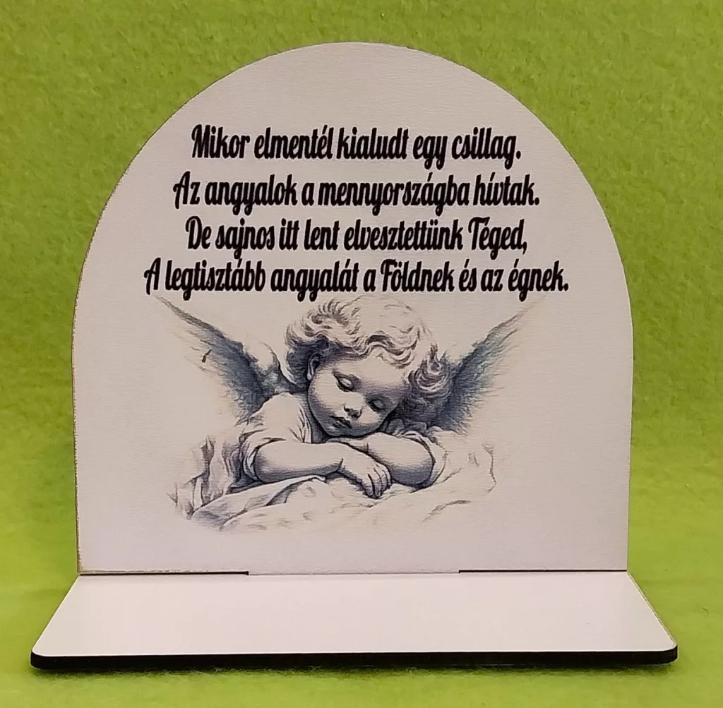 Nyomtatott fa Kicsi talpas angyalkás tábla Mikor elmentél kialudt.......... 1szett szélesség 13cm-12cm magasság Talp 13x7 cm