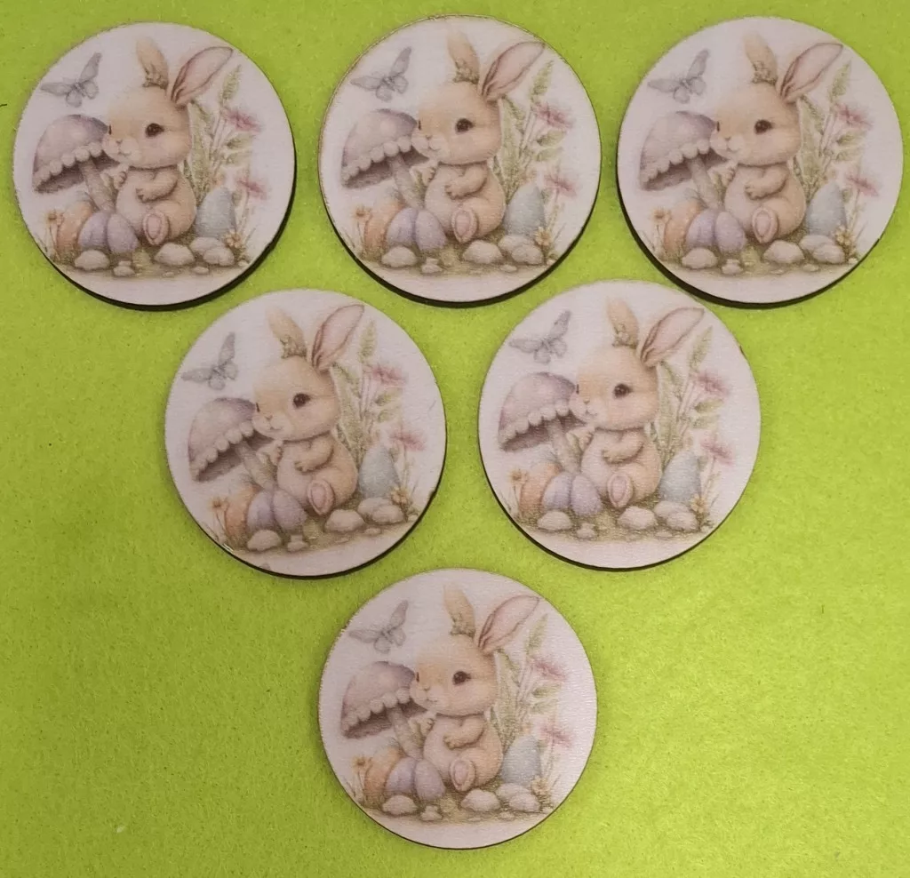 Nyomtatott fa Kör Nyuszi gombával 6db/csomag 5cm