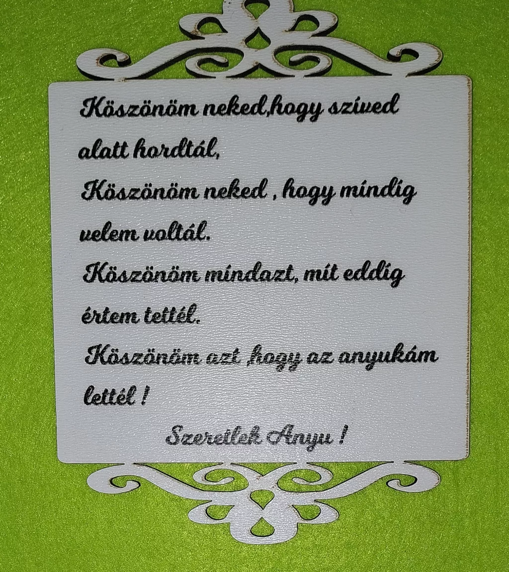 Nyomtatott fa Köszönöm Anyu felirattal 1db 11x15cm