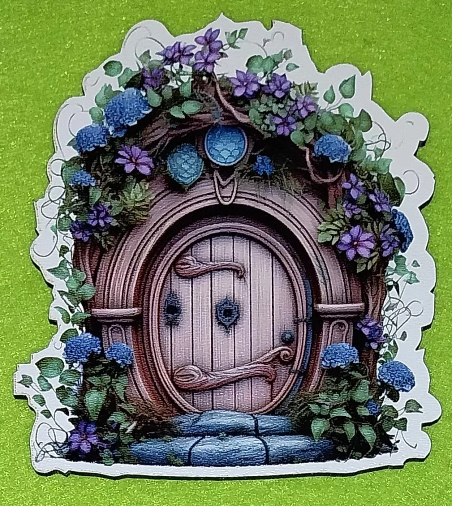 Nyomtatott fa Lila Virágos manó ajtó 1db/csomag 10,5x9,5 cm vastagság 2,5mm