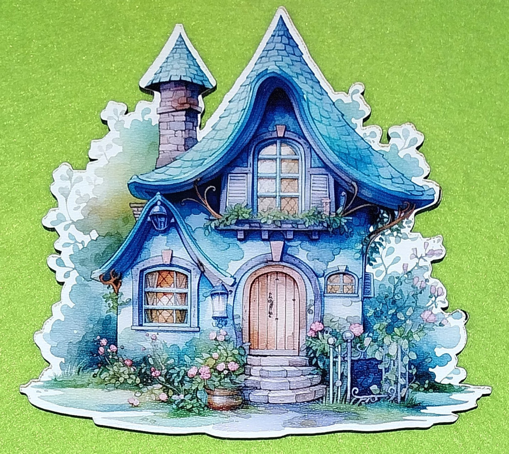 Nyomtatott fa Manó ház Kék cserepes 1db/csomag 14x13cm vastagság 3mm