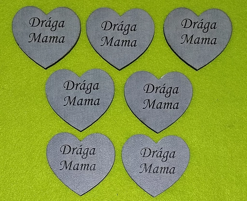 Nyomtatott fa Márvány szív Drága Mama felirattal 7db/csomag 5x4,5cm vastagság 3mm