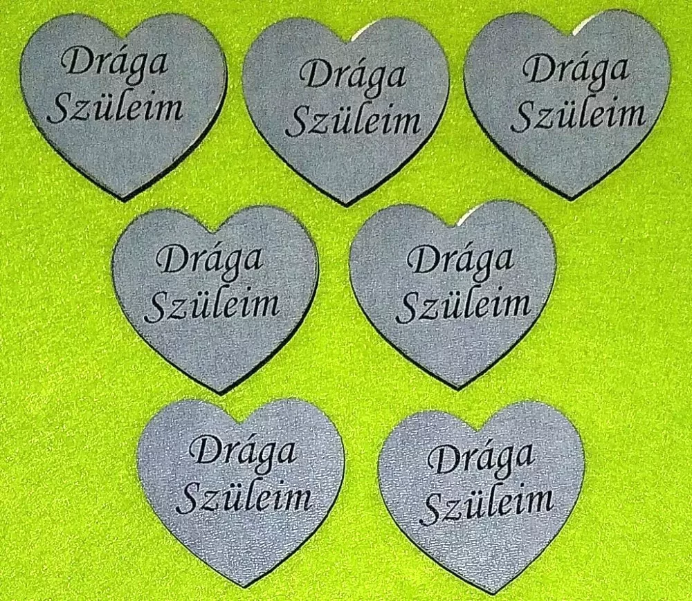 Nyomtatott fa Márvány szív Drága Szüleim felirattal 7db/csomag 5x4,5cm vastagság 3mm