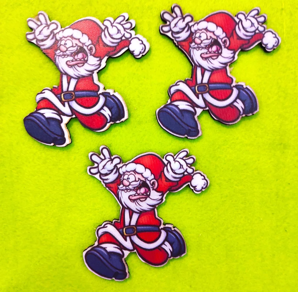 Nyomtatott fa Riadt télapó 3db/ csomag 9x8,5 cm