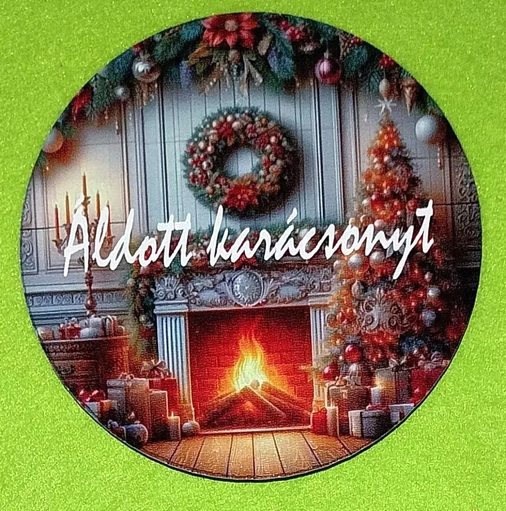 Nyomtatott fa kopogtató közép Kandalós Áldott karácsonyt felirattal 1db 11,8cm vastagság 3mm