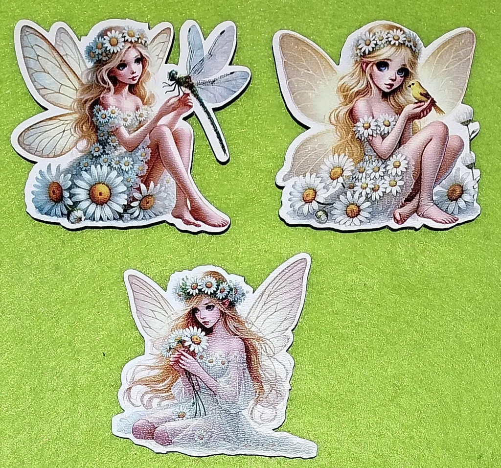 Nyomtatott fa ülő margarétás tündér szett 1szett/csomag 3db magasság 6,5 cm vastagság 2,5mm