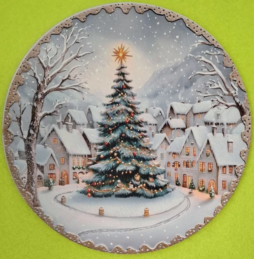 Nyomtatott kerek kopogtató közép Karácsonyfa a főtéren 1db 15cm vastagság 2,5mm